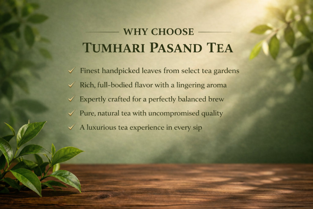 SHOP TO SIP OUR PRODUCTS PREMIUM TEA Don’t settle for less when you can enjoy premium quality in every sip. SHOP NOW GOLD TEA Perfect for starting your day with energy or enjoying peaceful moments, it’s not just tea, it’s a taste of elegance. SHOP NOW RED TEA Red Tea that energizes every sip.Perfectly brewed for a refreshing and vibrant tea experience. SHOP NOW The flavors are unmatched! Tumhari pasand Teas offers a premium experience with every sip. Each cup delights with a rich aroma and amazing taste. Truly worth it! We absolutely love this tea leaves and have recommended multiple people to give it a try. Great taste and aroma.Gives fresh feel